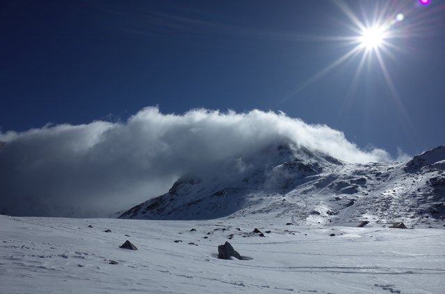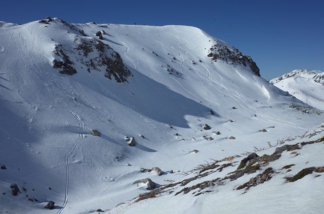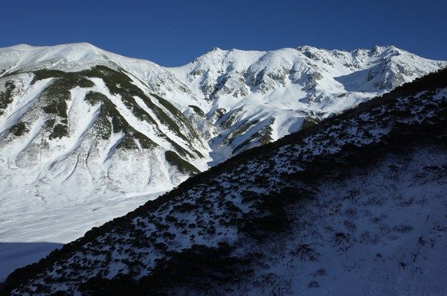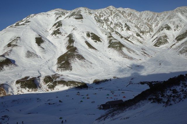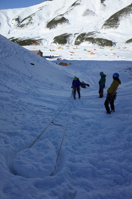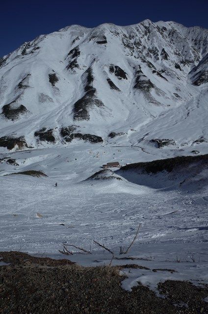 カリカリ斜面。荷物が重いので滑る楽しさ