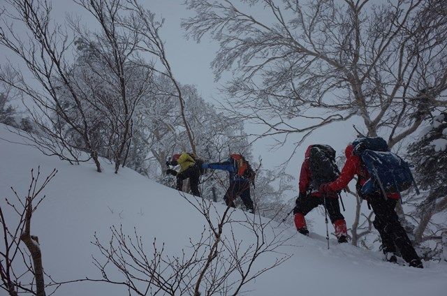 下山直後にN島さんの足が止まった。初めて雪の斜面を下る