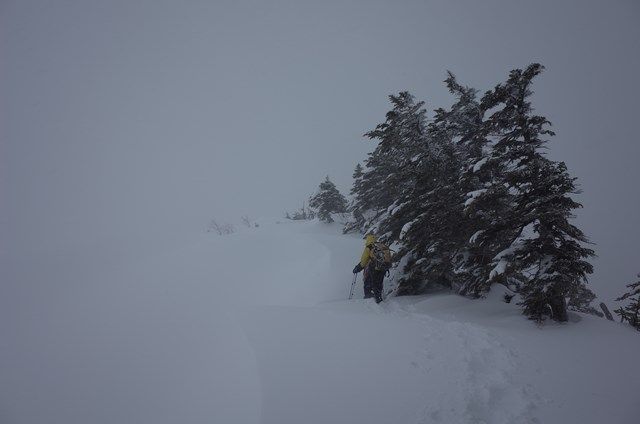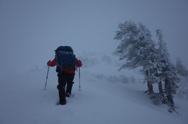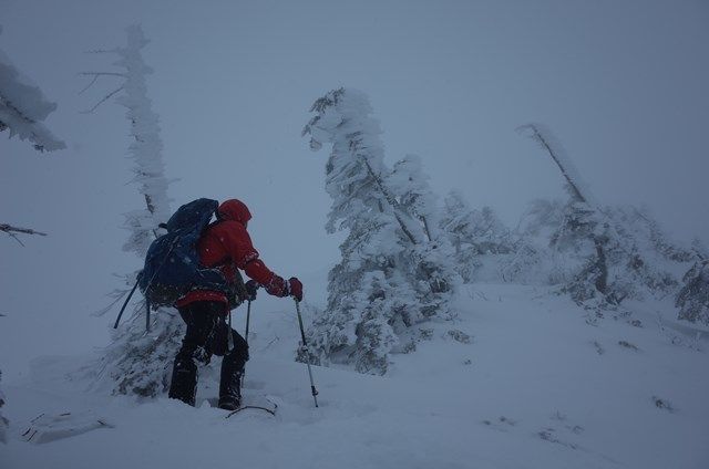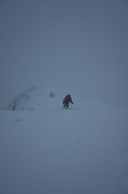 13:31 西北尾根は厳しい風が吹きつけるが、