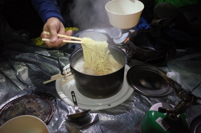 感じず、尿意を覚えるまで熟睡できた。朝食は棒ラーメン。