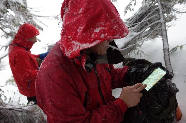 ストックの方向に進ませてから、GPSで慎重に下降ルートを