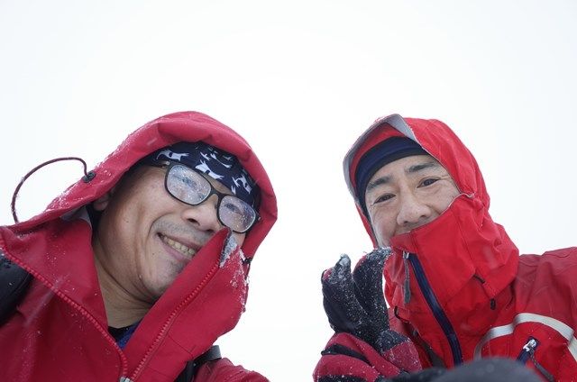山頂に留まっていた10分間のうちに、急激に風が強くなった。