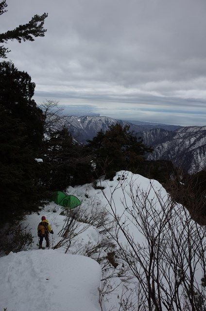 全身濡れた。正月山行で雨に当たるとは。テントに