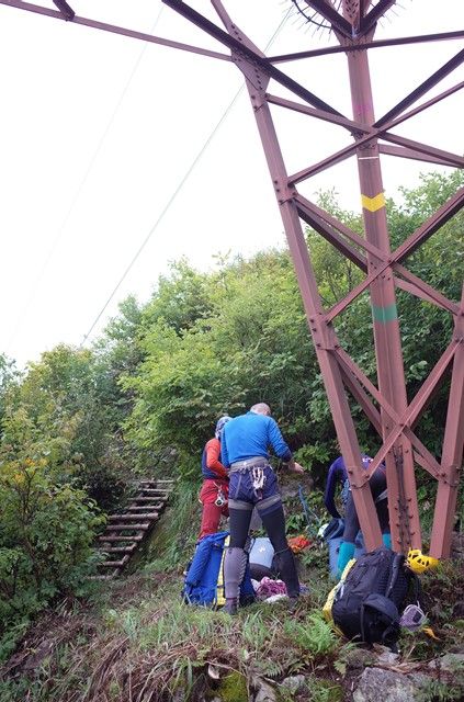 そばの鉄塔。これより道を外れてヤブ漕ぎの