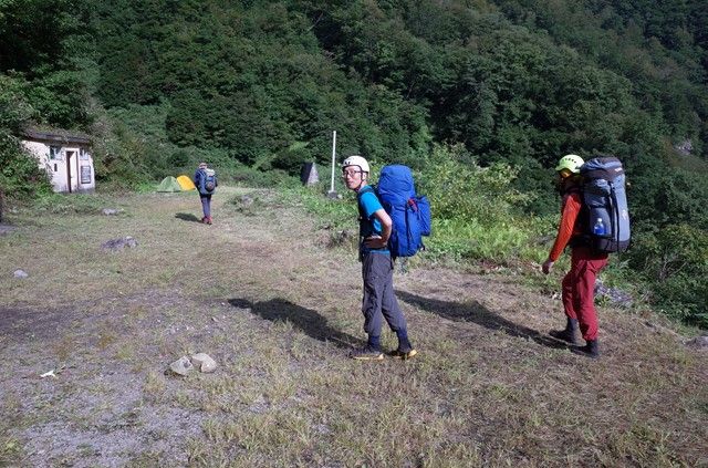 8:16 阿曽原温泉小屋(休業)で休憩。