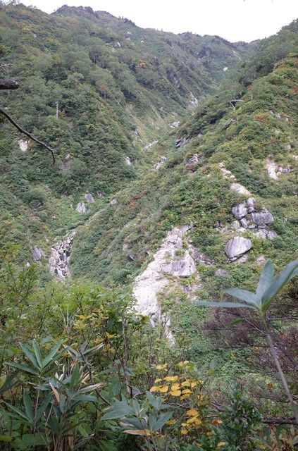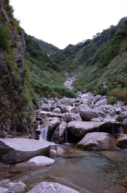 左岸の草付き涸れ沢を1564mまで詰め上がる。