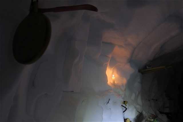 雪洞内は吐く息が白いが、気温は2.5℃。