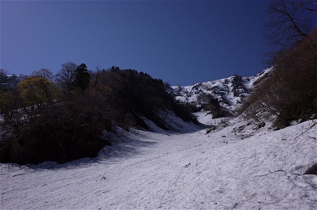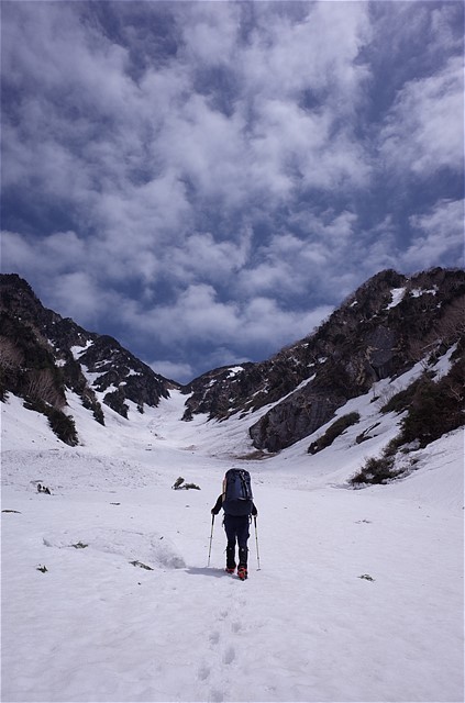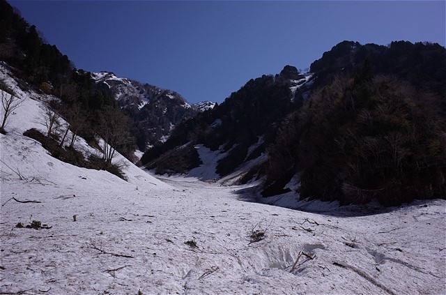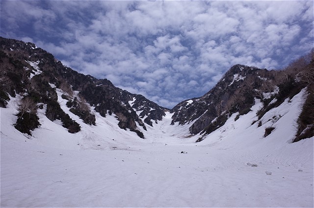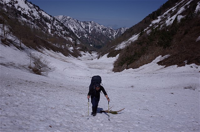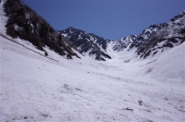 9:10 釜谷出合い。本谷からは風が吹き下ろす。汗が引く。