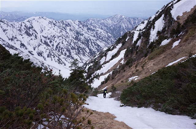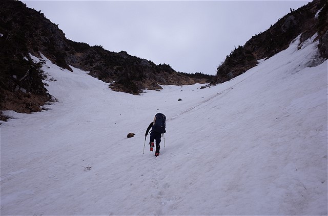 担ぐ荷物は水無しで19.0kg。昨年のGW合宿より2kgくらい増えている。参加者2名なので担ぐ共同装備が増えたからだと思っている。