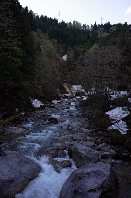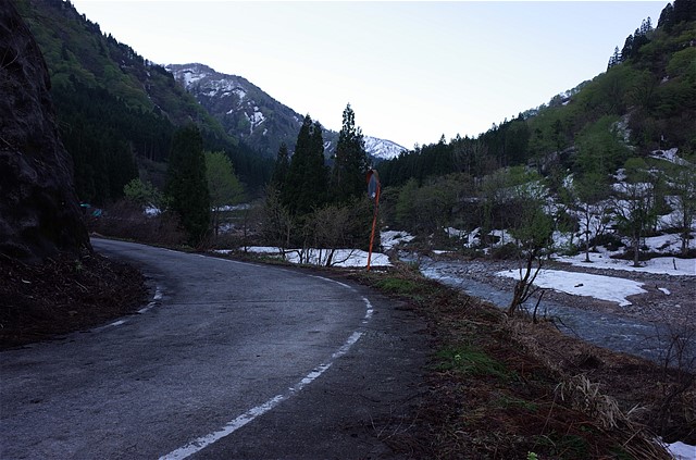 5:30 会館でNとさんと待ち合わせして、ラパンSSで片貝川に向かう。山ノ守キャンプ場の上流にゲートがあるが、軽自動車はすり抜けられる。