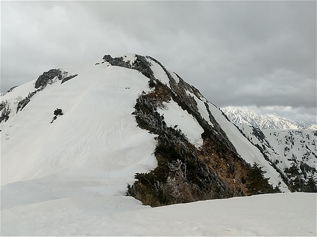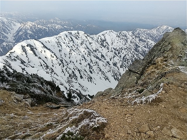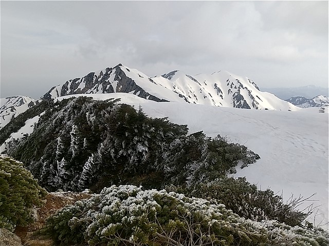 GRIIが起動しないので、スマホで撮影する(撮らないよりマシ)。雪面は堅く、アイゼンの爪が少し入るくらい。