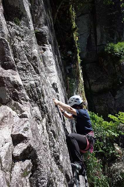 やまやろうは、残クリップで、富山登攀クラブ(5.8)を登った。今日のところは、5.8の男です(弱い)。2本登って終了。暑くて体力の消耗が激しい。刺す虫がいないのが救い。