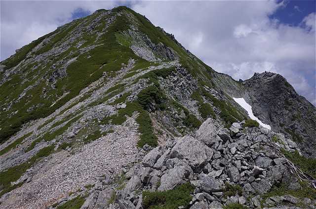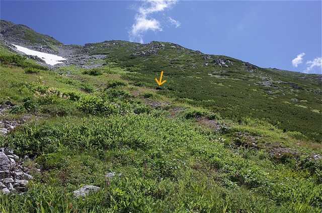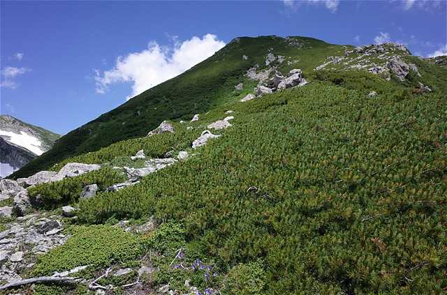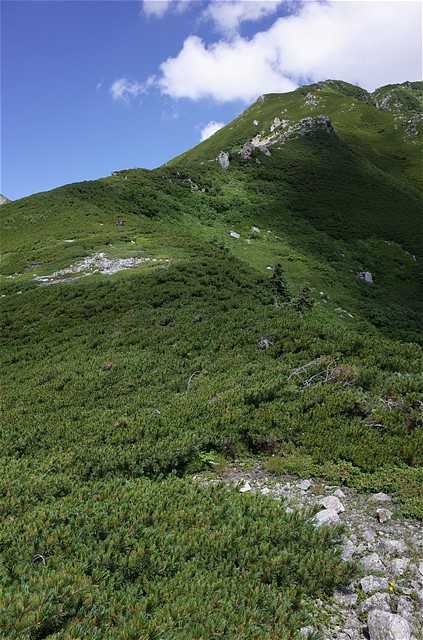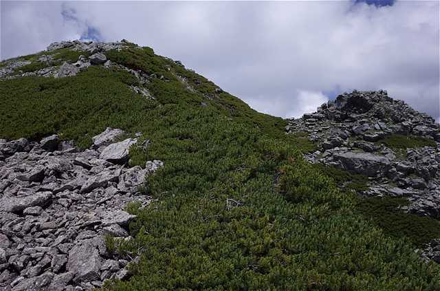 ハイマツ帯を出ると、ヤブと岩のミックスに変わる。