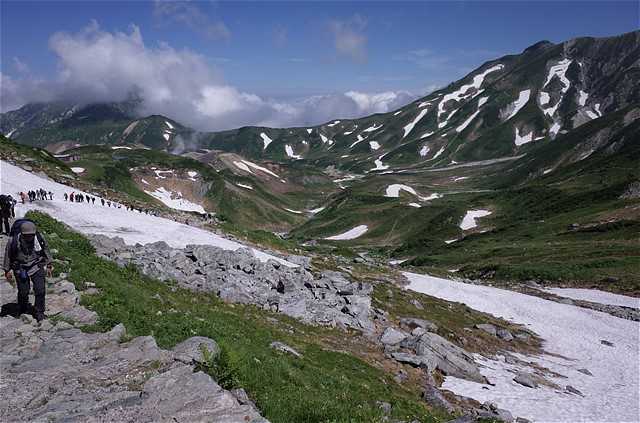 9:54 一ノ越。ここまでに雪渓は6箇所通過した。山荘前は人だらけ。とても雄山に向かう気にはならない。