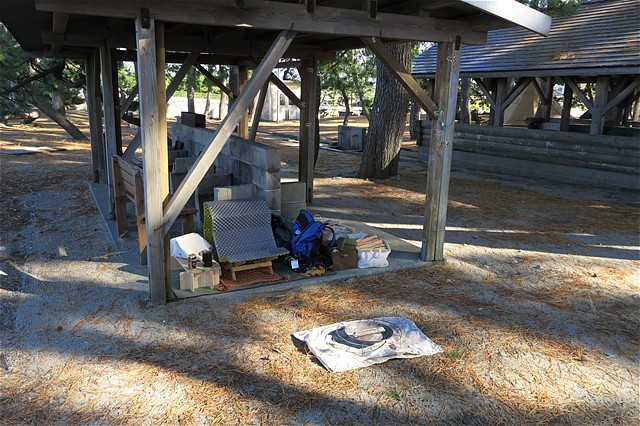 風の当たらない場所を見出すこと!秋冬キャンプは寒さとの戦いになる。その大前提が風除けなのだ。やまやろうはテントサイトに来たら、歩きまくる。できるだけ風の当たらない場所を探すためだ。今回は、園家山キャンプ場に来たが、風がある。車中泊なので、タープなど風除けは持ってきていない。現地にあるもので何とかしないといけない。かまどが左右に並んでいる、その片側に身を置いた。写真でいうと、右上から左下に向けて常に風が吹いていた。それをかまどのブロックで防いだ。椅子に座っている自分には風は当たらない。焚火台には風が当たり、薪がよく燃える。しかも煙を浴びない。計算し尽された設置場所である。自画自賛。薪カゴを空にするまでの5時間を、暖かく過ごすことができた。焚火キャンプは、立地が全て。とにかく時間をかけて、納得いくサイトを見つけましょう。