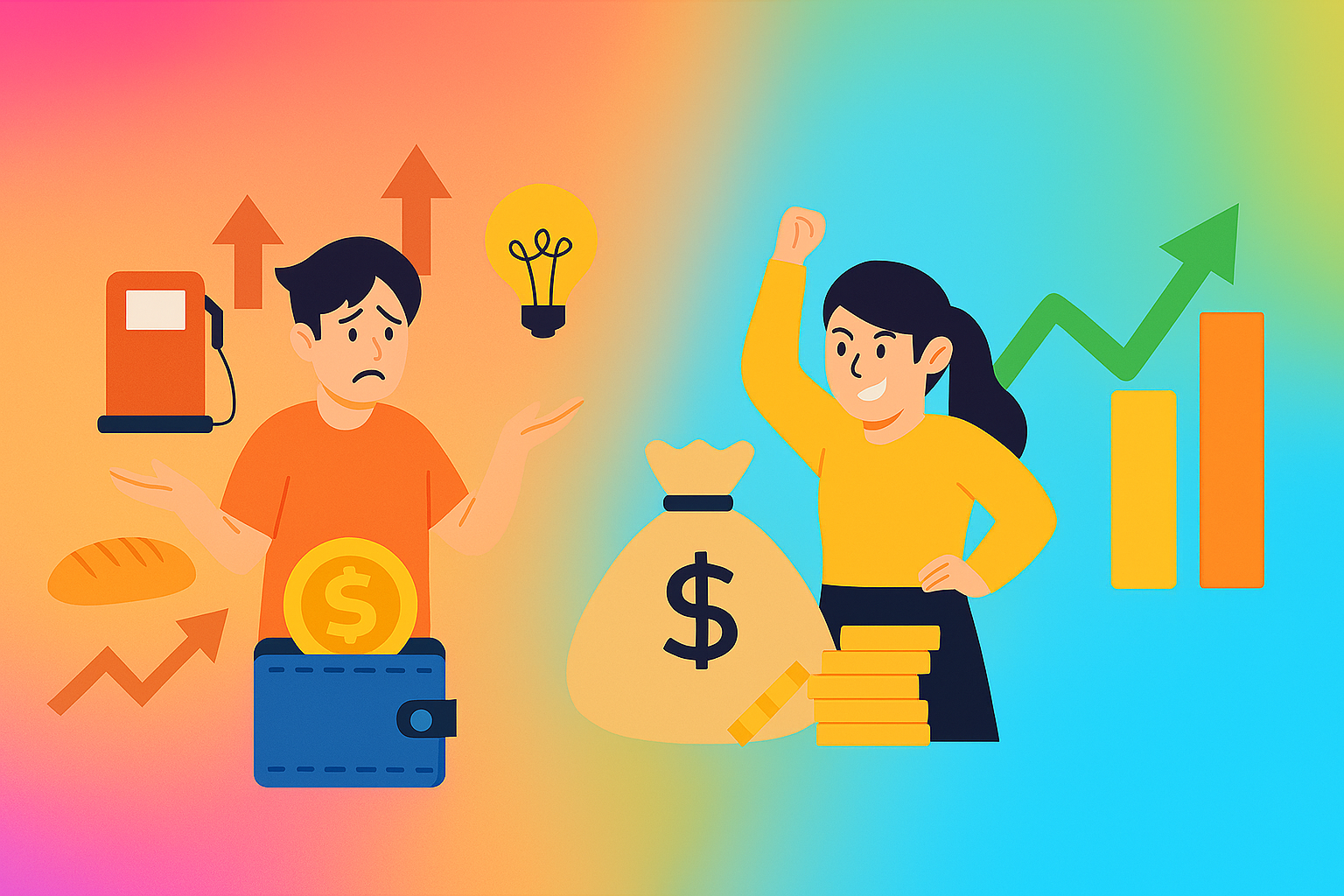 【コラム】インフレ時代の家計戦略とは?節約や貯金だけでは損する理由と「投資の力」 こんにちは、ネガちゃんです。最近、スーパーやコンビニで買い物をしていて、「あれ、前より値段が高くなってる…?」と感じたことはありませんか?ガソリン、食品、日用品、光熱費…少しずつ上がっている価格に、気づかないうちに家計が圧迫されていることもあります。一方で、給料や年金はそこまで変わらず、生活費だけがじわじわ増えている。こうした感覚のズレは、日常の小さな「違和感」として表れますが、放っておくと家計全体に思わぬ影響を及ぼすことがあります。また、「とにかく節約しなきゃ」と思って支出を抑えることに集中しても、インフレのスピードには追いつけない場合があります。小さな節約だけでは守れないリスクが、日々少しずつ積み重なっているのです。今回のコラムでは、日常生活で感じる「お金の違和感」を切り口に、インフレ時代の家計管理について解説していこうと思います。なぜ節約だけでは不十分なのか、そして現金を貯めるだけでなく、どうすれば家計を守ることができるのかをわかりやすく整理しますので、ぜひ最後までご覧ください!インフレが家計に与える影響日々の買い物や光熱費で「何となく高くなった」と感じる価格の変化は、実は家計にとって見えにくいダメージを与えています。これがインフレの怖さです。例えば、100万円を手元に置いたままにしていると、物価が年2%上昇する場合、5年後には「同じ100万円で買えるモノやサービス」は約90万円分に減ってしまいます。額面上は変わらなくても、実際に生活できる力は着実に目減りしていくのです。日本では長年デフレが続いたため、「お金は貯めておくのが安心」という感覚が根強くありました。しかし、インフレが進む今、この安心感は逆にリスクになります。銀行の普通預金金利はほぼゼロに近く、現金を預けても利息はほとんどつきません。物価上昇率が2%だと、利息で補えるどころか実質的に資産が目減りする計算になります。さらに、インフレはじわじわと進むため、日常生活への影響は少しずつ蓄積されます。毎日の食費や光熱費の小さな値上がりが、1年、2年と積み重なると、数万円以上の負担増になることもあります。給与や年金が同じ水準のままなら、生活水準が自然に下がっているのと同じ状況になってしまうわけです。つまり、インフレは単なる数字の問題ではなく、私たちの暮らしの質に直接影響する「見えにくいリスク」として家計にのしかかっています。この現実を理解することが、次に進む「節約の限界」を考える第一歩になるのです。節約だけでは守れない家計のリスク「収入は増えないのに物価だけ上がる…」そんな状況で、まず思い浮かぶのは節約ですよね。スーパーでの買い物を少し工夫したり、光熱費を切り詰めたり、外食を控えたりする。日常の節約努力は確かに家計を支える手段ですが、それだけでは追いつかない場合があります。経済学でも指摘される通り、個人が倹約に励むこと自体は合理的ですが、社会全体で節約が過剰になると、需要不足によって経済が縮小する「貯蓄の逆説」が起こることがあります。これは家計だけでなく、私たちが生活する社会全体に影響を及ぼすリスクです。たとえば、節約志向が強まると、消費が減り、企業の売上が下がり、結果として賃金やボーナスも伸び悩む、という悪循環につながることがあります。さらに、過度な節約は個人の生活の質にも影響します。食費を削りすぎて栄養バランスが崩れれば健康を損なうリスクがありますし、通勤や仕事に必要な交通費を節約するあまり行動範囲を狭めると、収入機会を逃してしまうこともあります。つまり、節約は「手元のお金を守る努力」ですが、やりすぎるとむしろ損をする場合があるのです。インフレの環境下では、節約だけでは実質的な資産価値の減少を補えません。例えば、年2%の物価上昇のもとで預金金利が0.2%の場合、毎年約1.8%ずつ資産の実質価値が減っていきます。どれだけ節約して現金を積み上げても、物価のスピードには勝てず、結果として「守ろうとしたお金が目減りしていく」という状況になりかねません。日々の節約は確かに家計にプラスの効果をもたらしますが、インフレが進む現代では、節約だけでは不十分です。ここで必要なのは、「守るための節約」と「増やすための戦略」を組み合わせる視点です。この考え方をもとに、次のセクションでは、現金を貯めるだけではなく「お金をどう投じるか」について整理していきます。お金を「投じる」ことの意味と選択肢節約だけではインフレに勝てないとわかったとき、次に考えるべきは「お金をどう活用するか」です。手元にある現金をただため込むのではなく、将来の価値を生む方向に投資することが、家計を守る有効な手段になります。ここで重要なのは、投資とはギャンブルではなく、「リスクを理解した