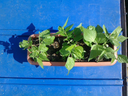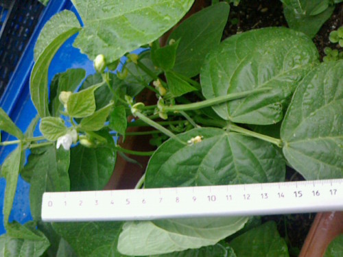 つるなしインゲンの花が咲きました。種蒔きして2か月以上、やっとここまで育ちました。背丈20cmいかないくらい。ちょっと矮化気味でしょうか。最初風の強い場所に置いていたせいかもしれません。2週間後ぐらいには初収穫行けるかな???