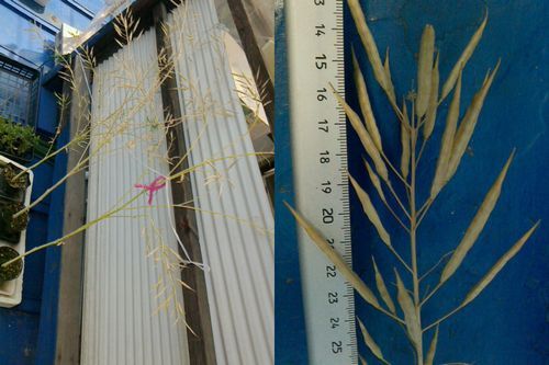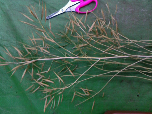 2012/05/20ミズナ採種に続き、残りの種を採種。残りの種は巨大ミズナです。↓この種の数凄い。絶対に屋根上では蒔き切れません。種の大きさは普通のミズナと変わりませんが、今回は大株だったので種の量が半端じゃないです。巨大ミズナとは(↓初代巨大ミズナ2011/03/27撮影)背が高いのは単にとう立ちのせいですが、通常ミズナの葉って細いのですが、巨大ミズナは葉が広いんです。こういう品種があるのでしょうか???
