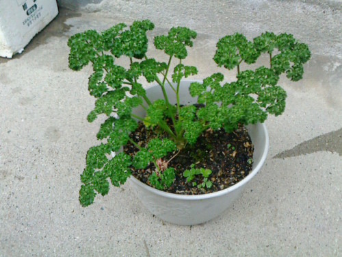随時収穫するので、なかなかブログに載せてもらえないパセリ君です。これと同じような鉢が全部で3鉢でローテーションして食べています。食べる期間は屋根上から、玄関前にお引越しです。