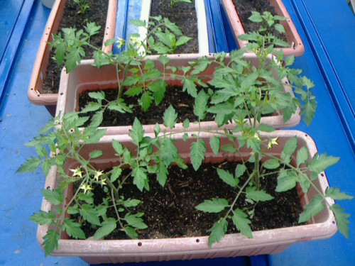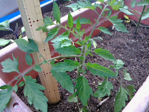 ミニトマトの苗にやっと蕾が付きはじめました。今度の土日には定植したいな2012/05/20撮影