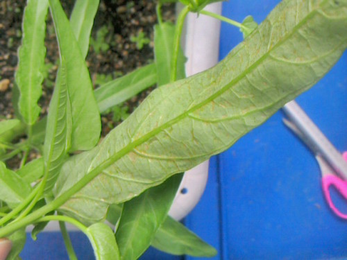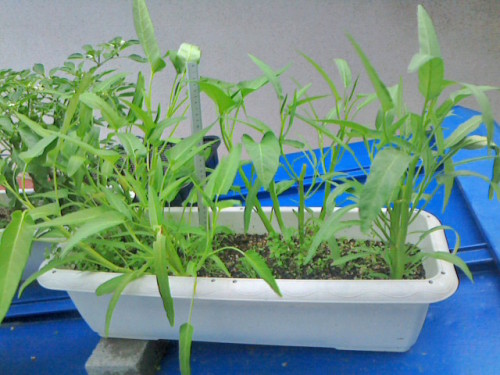 アサガオナの背丈がまた30cmぐらいになり2回目の収穫となりました。今回は3プランタからの収穫です。(アサガオナとは→2012年05月03日の日記)今のところ炒めて食べるだけなのですが、そろそろお料理の方も研究した方が良いかな?
