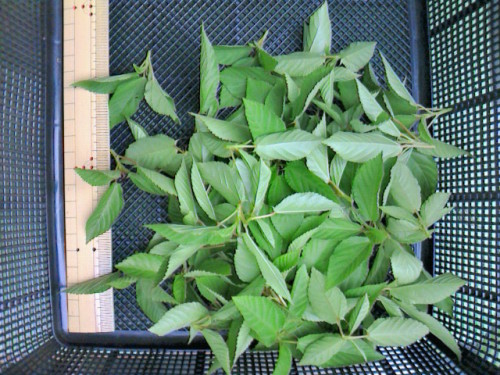 モロヘイヤ、今期初収穫になるのかな?一回摘心したのですが虫にやられていてその時は食べれるようなものがなかったはず。モロヘイヤは摘心して収穫することでどんどん脇目が出て、収穫量が増えます。昔はこのことを知らず、葉っぱだけを採っていてたいして収穫できませんでした。まだ脇目が少ないのので収穫量が少ないです。というかまだ葉が小さいのでますます少ないって感じです。