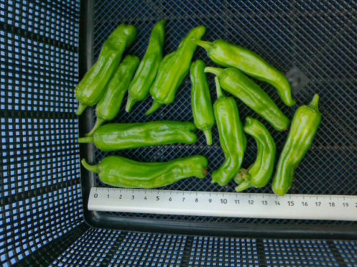 シシトウ2回目の収穫です。先週の倍に収穫量が増えました。毎週これだけの量取れればありがたいです。