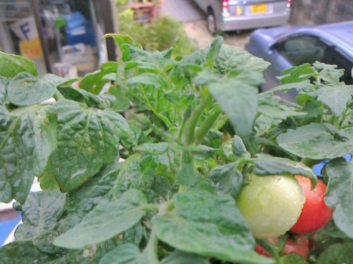 黄色ミニトマトは今日も順調な収穫です。一方ベランダトマトは、昨日一昨日の雨のせいか(というか今までも割れることが多かった)、赤く色づいたのは全て割れちゃいました。残念(T_T)
