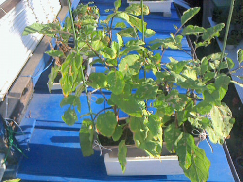 ナスの調子が悪く葉が生えなくもう終りかと思っていたのですが、今になってまた新葉が生え始めました。古い葉はもう枯れ始めたり黄色くなったりしているので、取り除いてみました。ちょっとさみしい状態になっちゃいました。。。更新剪定をして以来、結局まともな収穫が出来ていません。ここで最後の踏ん張りを見せてくれるのでしょうか?