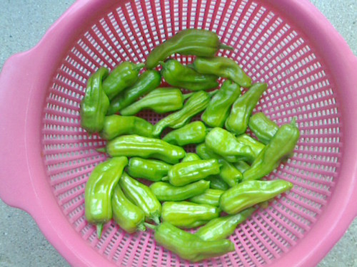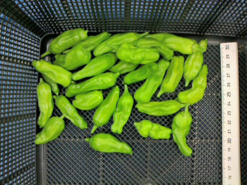 シシトウ2回目の収穫です。先週の倍に収穫量が増えました。毎週これだけの量取れればありがたいです。