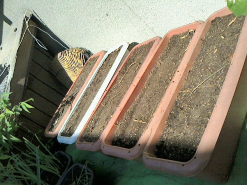やっと秋の種蒔きを開始しました。コマツナ2プランタ、ミズナ2プランタ、で今日は終了となりました。あとホウレンソウも蒔きたかったのですが時間切れとなりました。