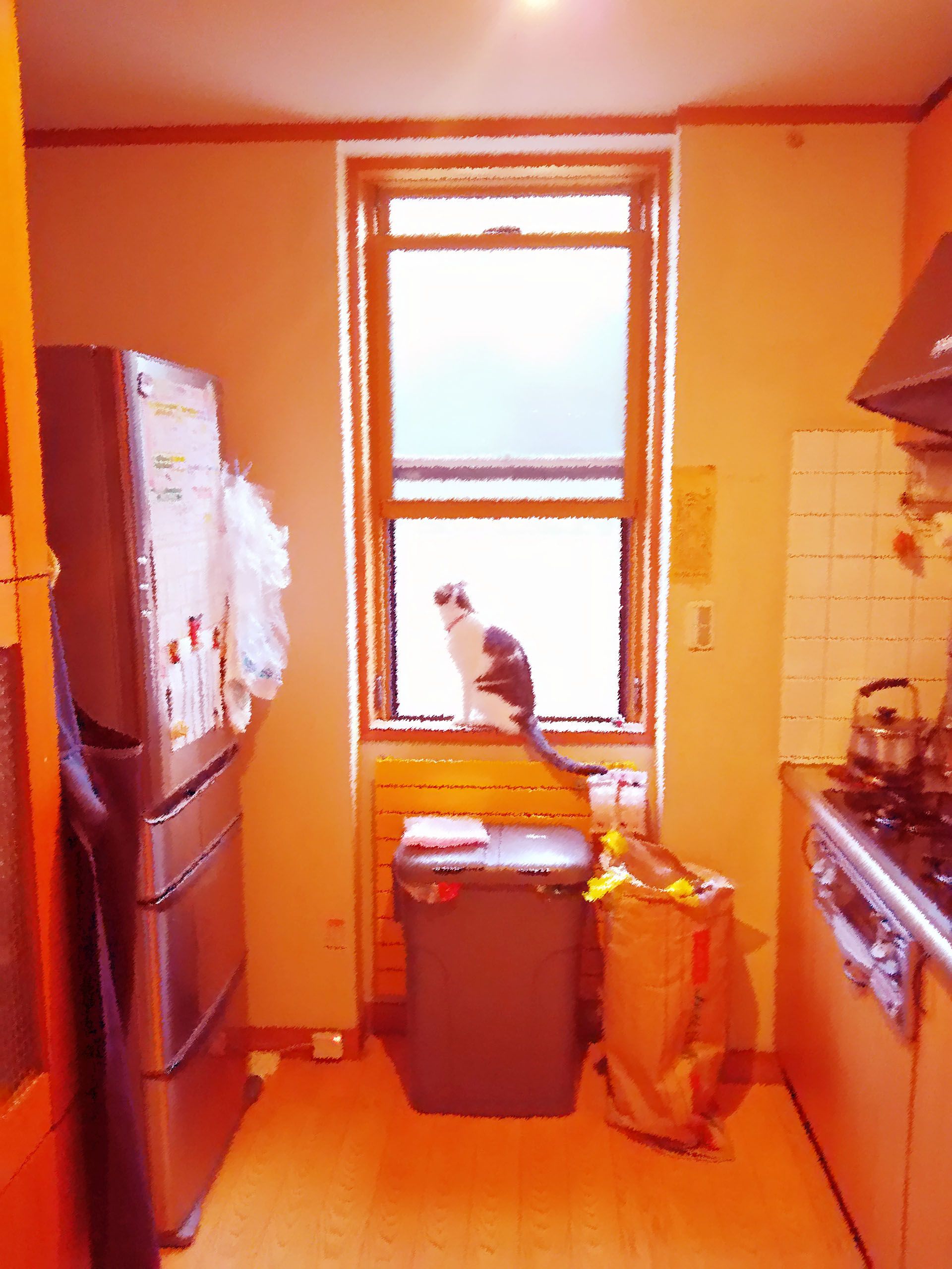 0暑い日が続いています。先日はアテンダントの送迎でクルマを運転したとき、外気温が36度でチョーびっくりしました。下の写真は今朝の5時頃、台所のナビをイラスト風にしてみたものです。 もうこの時間帯じゃないとブラ雄の散歩もきびしいです。散歩の後に庭の雑草も少し刈りました。ナスやバジル、エゴマの生育を雑草たちがじゃましていたからです。バジルには「助かったよ〜死ぬとこだったよ」と言われました。そんな気分。きのうの発達障がいの子どもたちのアテンダントは外食でした。プランはひとりの小学生が立てました。イタリアンなお店です。食べられるものあるのかしら。。。マルゲリータは隣の中学生男子が頼んだもの。無言で完食です。^^ それぞれパスタとかピザとか好きなものをチョイス。でもレストランなので少々高い。ひとり千円ぐらいの予算なのでサラダ・ドリンクバーまでは頼めませんでした。私はピラフ。(笑これは“正解”だったかも。ボリューミーでおいしかったです。千円。「おさんぽきのこ」著者しもじさんが飲もうよ!と言うので、アテンダントの後、ざっとシャワーを浴びて繁華街へ。おさんぽきのこ https://www.amazon.co.jp/おさんぽきのこ-石塚倉よし/dp/4784071938不思議な店があって、30分きざみでお酒類なんでも飲み放題!(399円)の店です。ビール、日本酒、焼酎、ワイン、洋酒、、、なんでもござれ。ただしひとり30分きざみなので、65分だとすると、たとえ5分オーバーでも399×3でひとり1200円ぐらいは酒代がかかります。完全セルフで料理だけは店員さんがサーブします。そのしもじさんにきのこマグカップをいただきました。しもじさんが撮影したきのこを、フォトショでイラスト化したものです。すごい豪華。しもじさんに これ、フォトショのレイアーどれくらい作ったの? と聞いたら100以上かな?( ̄ロ ̄lll) ガビーン ですって!クレイジーです。そしてもったいなくて使えません。ビンボー症?0