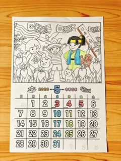 月末は毎回カレンダーにお絵描きして持って帰ります。