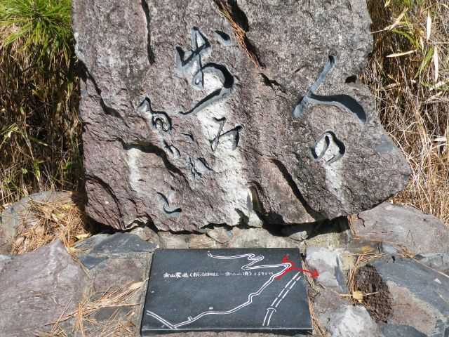 左に曲がると記念碑があり、そこを進むと金山方面です。