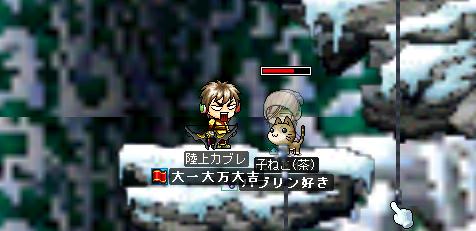 晴れて冬休みに突入したので、久しぶり(?)にメイプルストーリーやってます。今回は無駄にSS多めで;ゲームにINしてまずは、新スキル取得しようとしまして錬金術師さんに会いに行きました(´∀`*)お馴染み、電球マークが付いている術師さんに話しかけると100万ですとΣ(´Д`lll)┣"┣"┣"┣"┣"┣"┣"こいつぁヤクいぜ旅費に百万とか、ペリカンに何回乗れると思っているのかこのメガネさんは。幸い、赤い鞭は所持していたのですが結局、万年金欠な私は一時諦めることにしました(´・ω・`;)贅沢は敵です! さて、次は中国・台湾マップへ行ってみました。ダンディな人発見しましたm9(`・ω・´彼は、無償で食べ物を分け与えている心優しい髭おじさんでした。(たしか敵モンスターは、リプレのように強くはなかったです。時間沸きのボスっぽいモンスターも居るようですが出会いませんでした。モンスターで目を引いたのは、ちっちゃなイエティさんです。可愛すぎて、ついつい火矢を放ってしまいました(;-д- ) ちっちゃなペペさんです。こちらは、笑顔で戯れて見ました。可愛いモンスターは、良いものですねぇ癒されます。倒すのも可愛そうですが、そういうゲームなのでしかたなく倒しました(´・ω・`)こういうモンスターを狩ってレベルアップに励むのも良いのかも知れません。個人的には声と姿の可愛さを併せ持つ、フィクシーがお勧めです。 噂のリプレ新マップにも行きたかったのですが、ボスでもないのに3000オーバーのダメージを与えてくるモンスターが沸きまくると聞いたので(((( ;゚Д゚)))ガクガクブルブルとブルって行きませんでした。ゲームの動作が重かったのも大きかったです。というか、本当に重いです。凄く重いです。ラグ対策したのにヽ(`Д´)ノうわぁん色々やっているうちに狩りもままならない感じになってきたので露天キャラで五目並べでもすることにしました。実は昔からちょくちょく、五目並べやってます。暇な方お相手してくださいな(´∀`*)ーーーーーーーーーーーーーーここから年末ーーーーーーーーーーーーーさて今年も、もう年末です。この一年を振り返ってみて、非常に忙しかった・・・・というわけでもなく忙しい時と忙しくない時の差が激しい一年でした。なんかコレは悪いような気がします。普段からやるべきことをやっていれば、もうすこし落ち着いて充実した日常を送れていたのかなぁと思ったりしております。一年前の自分と今の自分を比較して、考えてみてもさして、変わっていないような・・・(;-д- )来年の年末には、今年一年で~~~が出来たぞ!出来るようになったぞ!みたいな事が言えるようにしたいと思ったり思わなかったり、半ば諦めていたりしています。一年を振り返ってみるといやほんとに、頑張らなければと反省ばかりさせられましたorz一応今年も、頑張ったことだけは頑張ったんですが結果がついてこなかったです><;ーー以上。今年の反省でした。来年は今年の頑張り具合を来年まで持続させつつ、目標に妥協せず生きていこうと思っています。年始の3日までは遊びますが なにはともあれ、今年も後少しです。皆さん良い年末をお過ごしくださいな(≧∇≦)bでは、今年はこの辺で(=゚ω゚)ノジャ、マタ!!おまけ1:来年もよろしくお願いします<(_ _)> おまけ2:初日の出っぽいモノ