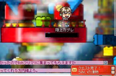 風邪だから、今日は早く寝よう。。。と早く寝すぎて、こんな時間に起きちゃいました><暇なので更新します。午後から、体調が回復したので懲りずにメイプルストーリーに旅立ちました(≧∇≦)b 今日も、オハゼさんを狩りました。貧弱! 貧弱ゥ!しかし・・・病気を患っている身体での水中狩りは思った以上に体力を消費しました(-д- ;)というわけで今日は早々に狩りを切り上げてサブキャラクターでINしてみました。そこには信じられない光景が!!ビシャスが街中に居るではないか!ヘネシスの平和を守るために戦う我がサブキャラクター→ 正面からアタック!! 背後から強襲当たらない・・・・( ´・ω・`)当たらないので、奥の手であるイオ○ズンを使おうとしましたが、今日はMPが足りないようでした。運が良かったなビシャスさんよぉ。今までどのくらいの方が、このビシャスネタを使ったことだろうか 戦いに疲れた我がサブキャラは、ヘネシスの皆さんに風邪を治す方法を教えてもらいました。古風なやり方を教えてもらいました(ノ´∀`*)首に巻くのはちょっと、メンドイので、ネギ入り味噌スープでも食します。 ちなみに、陸上カブレの経験値は以下のようになりました。 →→→→→→明日こそ・・・明日こそレベル上げたい(-д- ;)では今日はこのへんで終わります。(=゚ω゚)ノジャ、マタ!! おまけ。。文字には特に意味はありません(´・ω・`; )