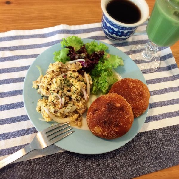 体重 49.1kg (昨日より+0.3kg トータル-2.2kg) 体脂肪率 22.8% 【朝食】 ・高野豆腐サンド ・サラダ ・コーヒー 【昼食】 ・サーモンのなんちゃら← ・シナモンロール ・アイスティー IKEAにてランチ。 このプレートの名前忘れました。 【間食】 なし 家庭菜園のほうれん草とレタス、適期を迎えたみたいなので今夜の分だけ収穫しました! 【夕食】 ・サラダ ・ジャーマンなす ・玉子とほうれん草の炒め物 ・ルイボスティー トレーニング なし にほんブログ村