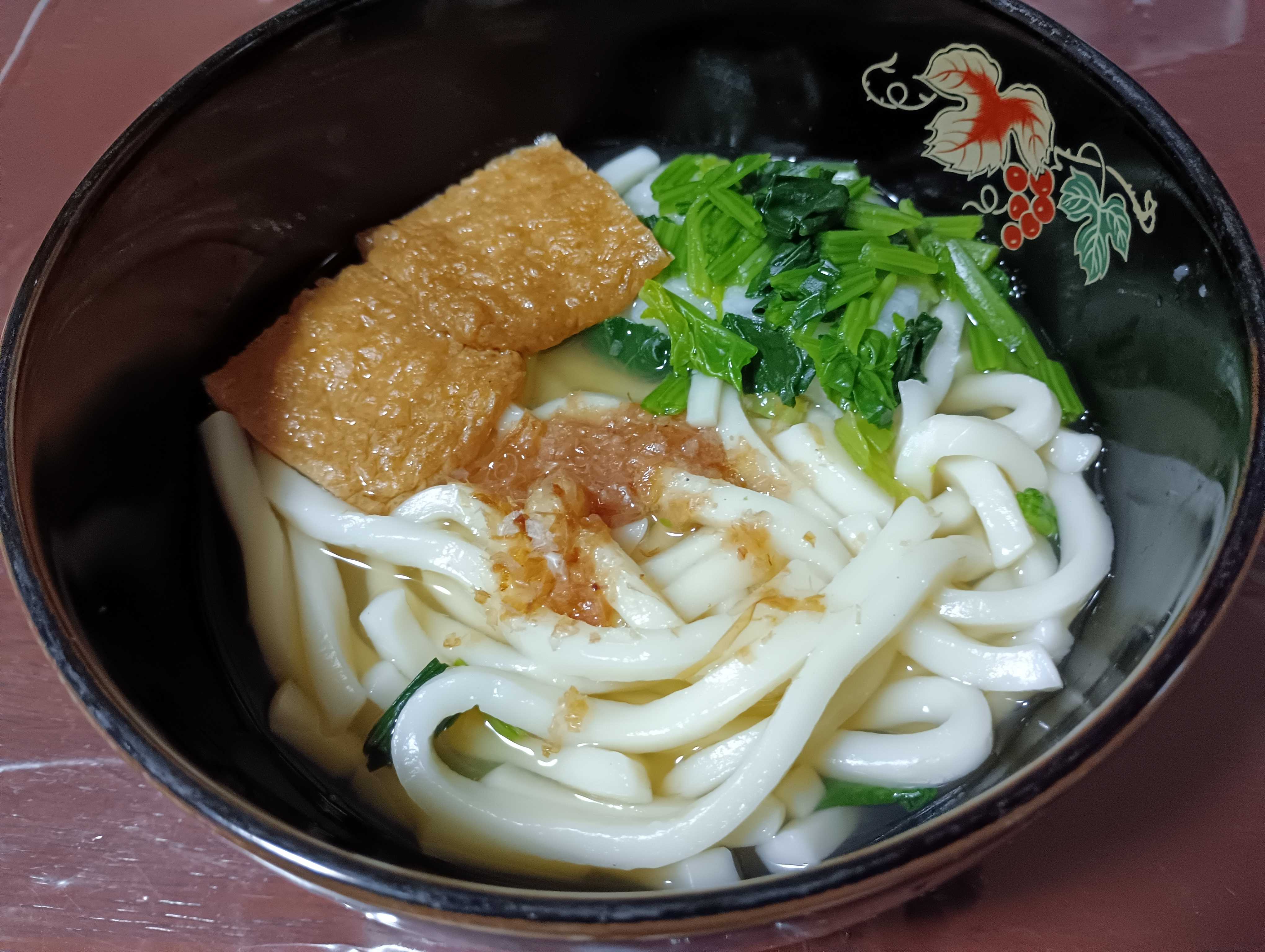 いつもはうどんスープの素1人分を2人で分けるところ更に残した。