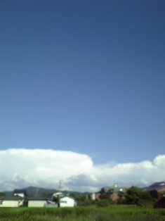 今日夕方撮った写真です。今日は熱風が吹いていた一日でした。そして陽射しがとても痛かった。空をみると、すっかり夏の空です。