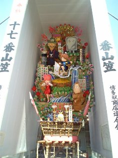 1日からはじまった博多祇園山笠ようやく今日、チケットを買いに行ったついでですが、博多駅の飾り山をゆっくり見ました。いよいよ、今日10日からヤマが動き出します(この博多駅の飾り山は動きません)これから15日の朝まで、迫力がどんどん増してきます。