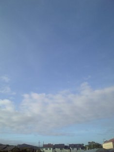 おはようございます。朝からもう嬉しいことがありました。6時前、テレビ付けた途端、絢香さんとコブクロのお二人が画面にいてなんだかお三人に起こしてもらった感じです。10月(でしたよね?)に発売の新曲「あなたに」のPV完成だそうです。歌詞が切ないんです。でも、メロディがステキなんです♪再び、6時半過ぎ映像を見て、泣いている私。はやくフルで聴きたいですね。今朝の空です。久しぶりに涼しい空気に包まれていますが、今日もまた暑い一日になるらしいです。予想最高気温36℃今日も素敵な一日になりますように(^^)