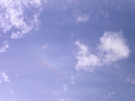 本当にあっという間に消えてしまった。。。運よく撮影成功かな??空に現れた虹見慣れた半円の形ではなく、太陽のまわりにあわられる「日笠」のひとつなのかもしれないわかります??