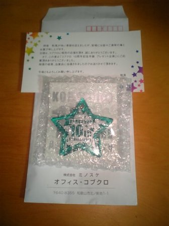 コブクロさんから手鏡が届きました。コブクロ10周年記念のプレゼント応募していて、昨日、家の新聞受けで私の帰りを待っていました。なかなか封筒を開けることができなくて・・・・メッセージと、手鏡緑色の手鏡でした♪届くなんて思っていなかったので、すごく嬉しかったです(^^♪
