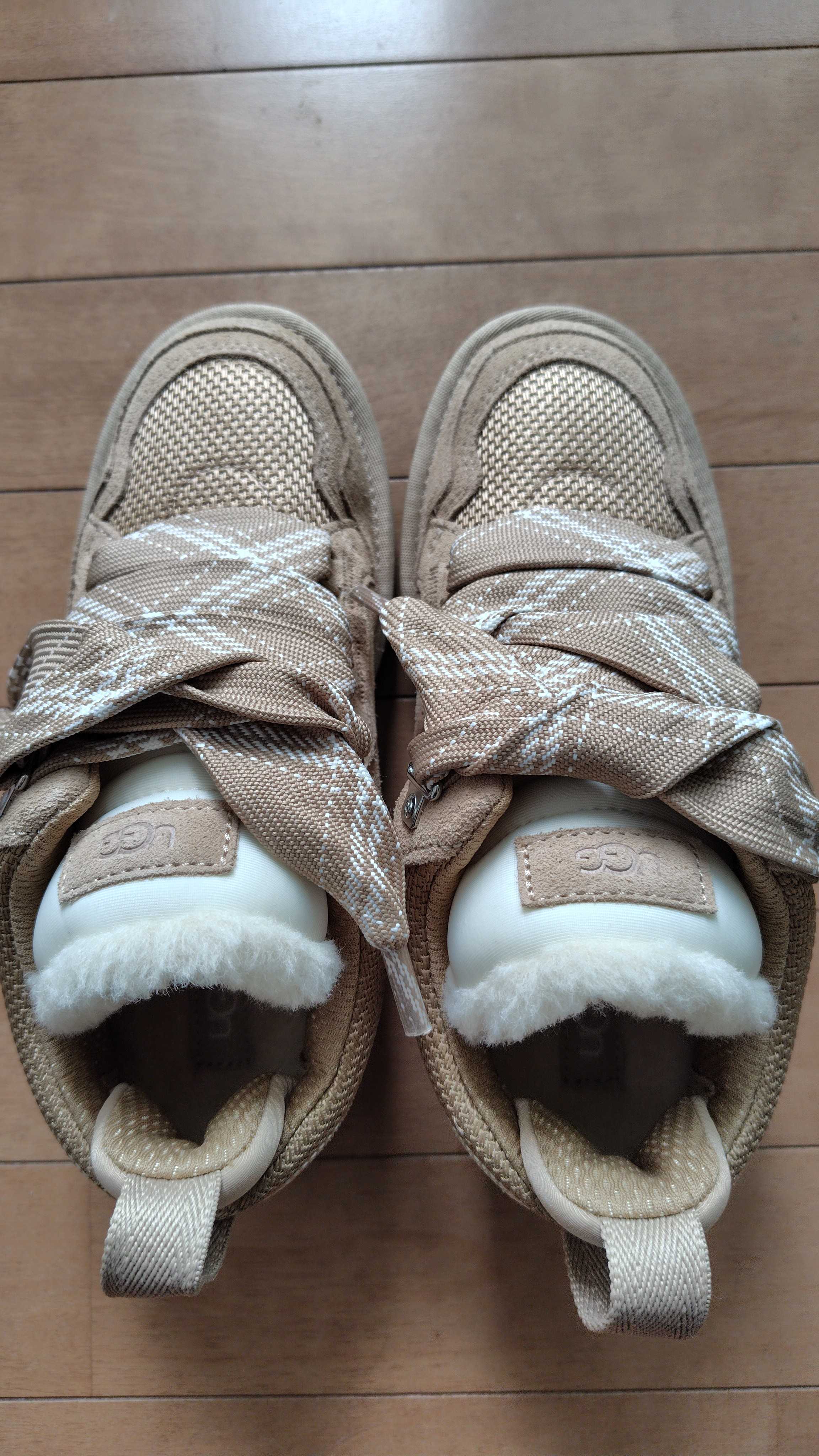 先日、新宿伊勢丹で買ったUGGのブーツ。完全に冬に履くつもりで中に毛が入ってモノモコした物を選んできました。季節先取り(過ぎ?)のお品楽天で見たら、ポイントだのクーポンだのつくと私が買った価格よりだいぶお安いのだけどUGG アグ スニーカー ローメル レディース LOWMEL ベージュ 1144032いやいやいや~~伊勢丹で何足(何種類)も履かせてもらったので===あれもこれもと私が目移りする度に奥の倉庫から運んできて頂き若い女性の店員さんだったので、体力はありそうでしたが私だったら『いい加減にしてくれ~~』と根を上げたかも?ごめんなさいね~~でも、お陰で可愛いブーツ(実はスニーカーだそう)が買えたので満足です。ブーツいやスニーカーは厚底で履きやすい。中にしっかりと毛が入っているのもあって、紐をキチンと縛らずにサッと履け、サッと脱げる。今、そういうスニーカー流行っているけど、やっぱり脱ぎ履きは楽に限る。もしかしたら、何を着てもこの靴が主役・・・みたいなコーデになりそうなのが心配ではありますが足元が可愛いのでテンションが上がる♡本当はこちらのアンスレーを購入しようと思って試しに履かせてもらったんだけどアグ UGG 1106878 レディース モカシン ANSLEY アンスレー レ...私みたいに長時間歩く人間には足が疲れちゃうのでやはりスニーカーの方が良かったみたい。私が好きなダコタはもう製造中止なんだって!!UGG アグ モカシン ダコタ ムートン シューズ レディース シープスキン ス...可愛くて履きやすくて好きだったのに===ま、これは最初にないと聞いたので、即諦めて・・・その代わりに今年からの新作と言うのを色々試しに履かせて貰いました最後まで迷ったのは、もこもこの毛が入っていないスニーカー。<UGG> ロー ローメル / Lo Lowmel UNITED ARROWS ...『こちらの方が毛が入っていないので、一年中履けます』との事だったがUGGは私の中では「冬に履く靴」なので、やっぱり暖かいのが欲しいな~と思ってMBT以外で厚底の靴って履いたことがないんだけど、UGGでも薄底よりは厚底の方が腰への負担は少なそうただ、ボリューム感が今時の若い子みたい・・・と言う見慣れてない自分の足への違和感が今はアリアリ。冬になる頃には見慣れているかも?昨日あたりから、急に夏から秋になっちゃって45RのニットもUGGのもこもこも、まだまだ===と、思っていたけど。意外と早く身につけられそう・・・とか言って油断は禁物。去年も確か10月まで暑い日があったはず。気を抜かず、ガンバロー!!