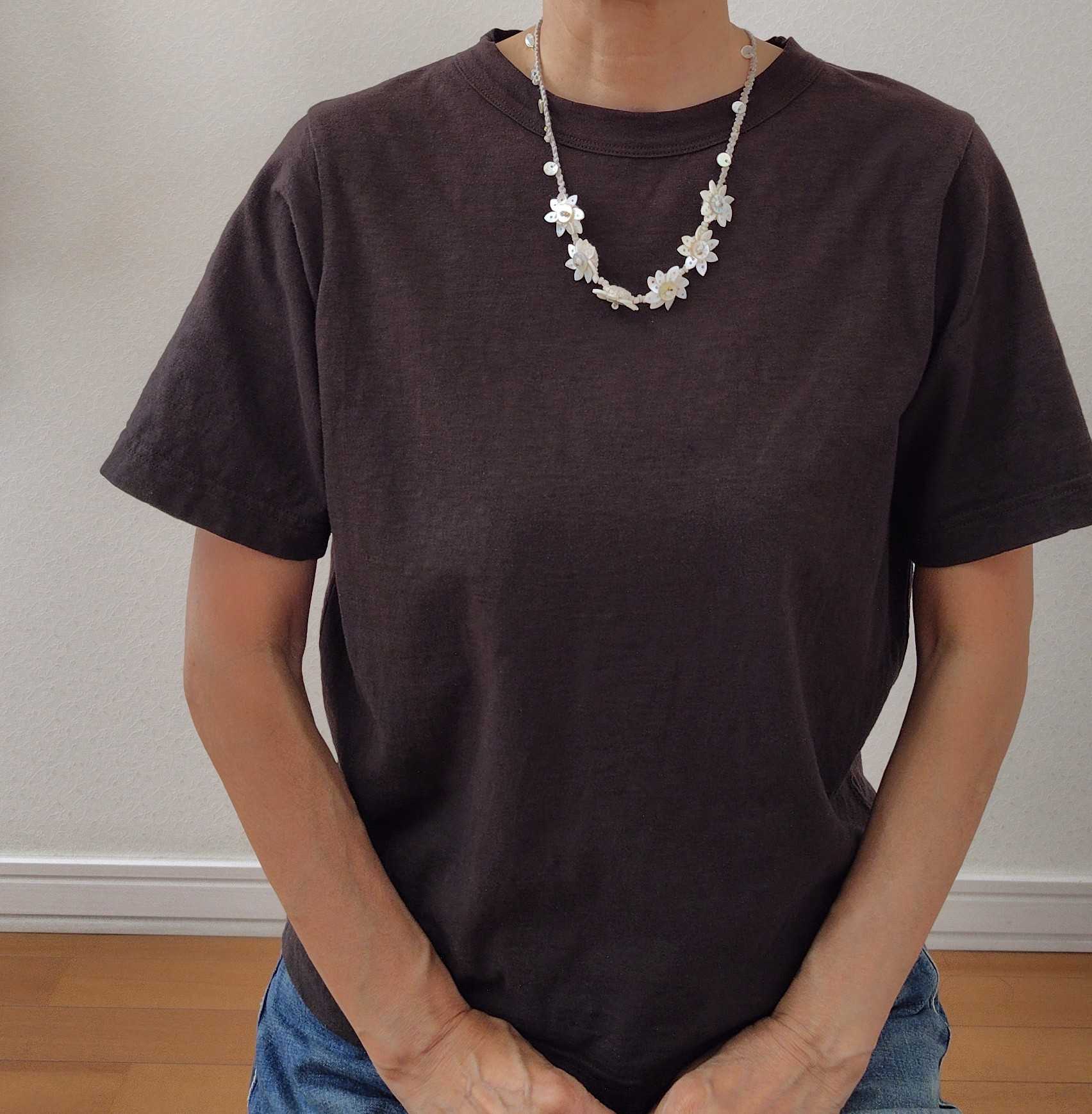 先日、図書館から借りて読んだ『何歳からでも輝ける秘訣』この本の中で、藤原美智子先生が仰るには・・・何歳からでも輝ける秘訣 [ 藤原美智子 ]『ファッションはメイクと違ってテクニックは必要ないのですから自分を突き詰めていくと、自分らしいスタイルが徐々に出来上がっていくはずです』との事。そうか、そうかと、やたらと腑に落ちた。腹落ちした・・・ってやつ?メイクはテクニックが必要だから苦手だったんだな、私(そこ?)そして、ファッションもテクニックが必要なものが苦手。そりゃあ、袖や裾を折るとかトップスをボトムにインするかしないかとかの簡単なテクニック?はするけれど。襟を抜いて~とか、前だけインして後ろはフワッととかスカーフやストールをこんな風にねじって巻いて~~とか、考えただけでも超面倒くさいそんな自分の性格にも気が付かず、今年の春先に買ってしまった45Rの紐。45R シルクツイルリボン フォーティファイブアール アクセサリー・腕時計 チョ...これがまたとんでもなくテクニックが必要な代物だった45R シルクツイルリボン フォーティファイブアール アクセサリー・腕時計 チョ...頭に巻いたことはないけどね~ネックレスにしたりバッグにつけたりなど活用方法は無限大・・・と、お店の方にオススメされて買ってはみたが。ブレスレット代わりに腕にグルグル巻きにしたくらいそこで・・・先月買って、全くテクニックが不要なブレスレットと合わせて45R かさねレザーのフラワーブレスレット フォーティファイブアール アクセサリ...こんなネックレスに変身させてみた。ちょっと気になっていた、ブレスレットと同じお花が連なったチョーカーに似せてチョーカーも買っちゃおうかと思っていたが、買わなくても十分満足後ろはこんな感じな~んて、妄想したけど。冷静になってみると、このネックレスもどきを何時するんですか?と、思って写真を撮って満足して、散財しなくてすんだ8月。助かった~~お楽しみは秋冬物にとっておこう===