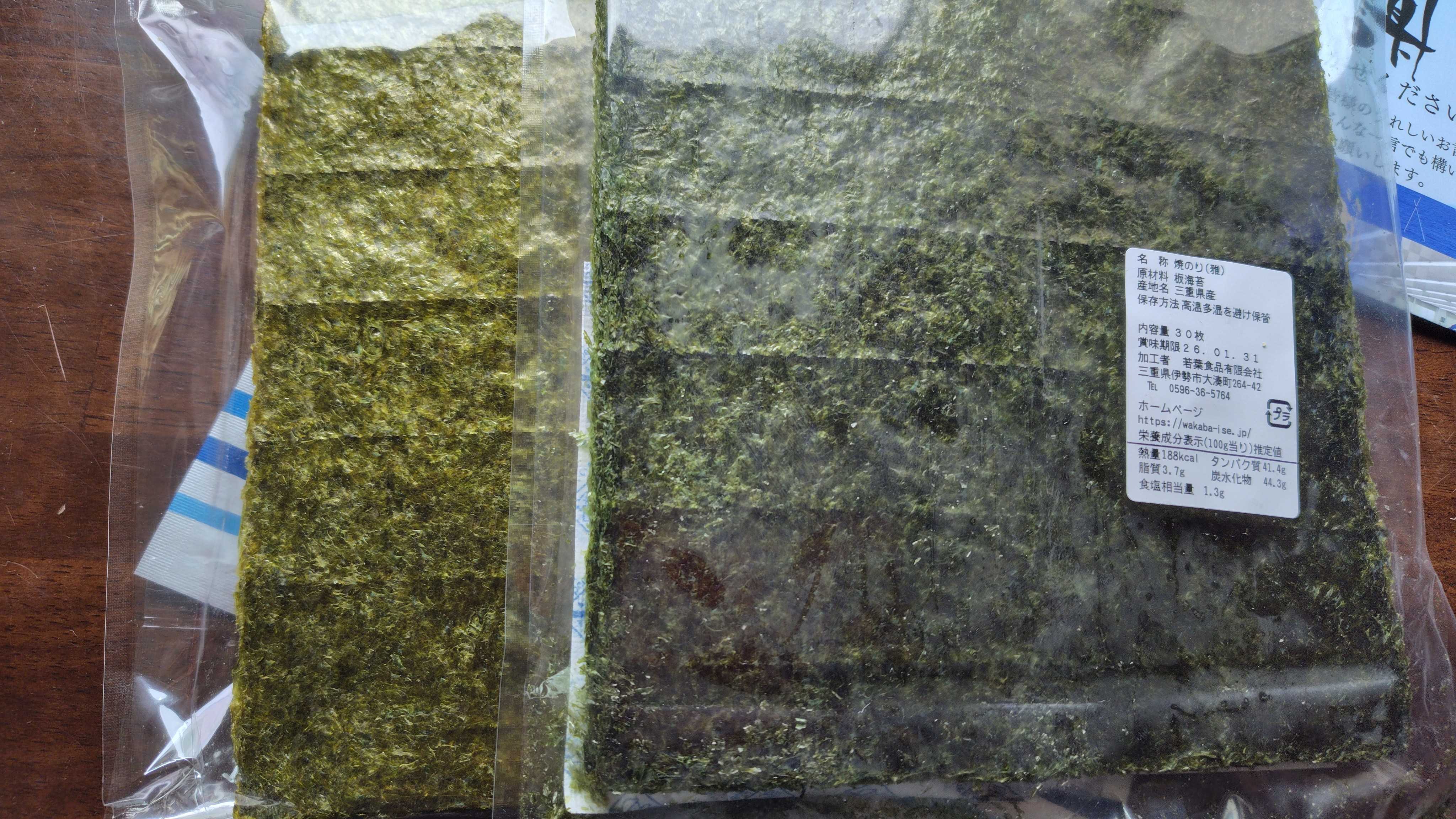 普段は毎朝5時起きが通常モードなんだけど、ひとり時間の確保に今朝は4時起きの私。朝の5時前に洗濯物を外に干しにベランダに出たら久しぶりに夏の朝の匂いをかいだ。その昔、小学生の頃ラジオ体操に出かけた時の朝の匂い。最近の小学生は夏休みのラジオ体操は多くても3回で終わってしまうとか!?通勤途中のラジオで聞いてびっくりした息子の頃(20年近く前)は土日、お盆はなかったけどそこそこあって親も当番で駆り出されたりしたし。私が子供の頃(50年近く前)は、もちろん夏休みの初日から最終日まで毎日あって、『新しい朝が来た~~♬』と朝から大合唱したし、スタンプを押して貰うのに友達と躍起になったもんだ。・・・なんて書くと、昭和って言うか、朝ドラの中の話って言うか、もはや戦前みたいな遠い昔の話みたいてな、どうでもいい事を書いてもまだ5時台で、朝のひとり時間、最高!!最高と言えば・・・コスパも味も最高な物、いや自分にベストな物を探している。それは毎日かなりの枚数を消費している・・・海苔先日買ったのは、左の物。40枚も入っているお得なコースをチョイスしてしまったが。海苔 訳あり焼き海苔 全型40枚 or 上級30枚 or 極上品の焼海苔全型20...↑同じお値段で枚数が違うコースあり。真ん中取って30枚を頼めば良かったかな~~と後悔したちょっと緑っぽい海苔味が良ければ見た目が多少残念でもいいんだけどねーまだ食べてないので、結果はこれから。訳あり 焼き海苔 全形 30枚 答志産 雅(みやび) 【味重視】 コスパ 送料無...右のまだちょっと黒いのは↑こちら。8月になったと同時にリピート購入したもの。こちらもコスパ重視で、お値段通りと言った感じであるがこうやって比べてみるとそんなに残念な感じでもないけど・・・やっぱり、食べ比べてみないと分からないかもしれない。今回、私が買った海苔の他に欲しかったのはこちら。【同梱限定商品】海苔 アルミチャック袋 詰替用保存袋(板のり50枚入ります)同梱...こう言う袋に入っているだけで『劣化が防げて美味しそう』って感じがするのでまずは見た目で自分の脳を騙す作戦成功するかどうかは不明ですがま、お安い海苔はお値段気にせず気兼ねなく沢山食べられるのが良い所。まだまだ、私の最高の海苔探しの旅は続きま~す