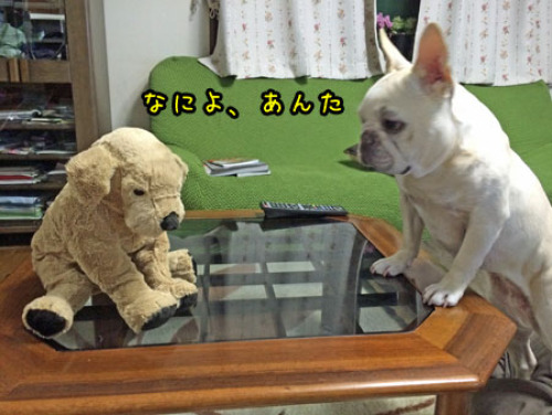 先日、初めてIKEYAに行ってきました。広いわお洒落だわ安いわ珍しいものあるわ…で、とても楽しかった。そこで、娘へのおみやげに、可愛い犬のぬいぐるみ980円也を買ってきました。IKEYAで買ったから、名前は「いけちゃん」にしようかなんて娘と話していたら、プーがしゃりしゃり出てきて、騒ぐだけ騒ぎ、いつもすぐ寝てしまうプー。