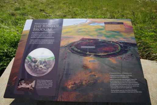 冬至の日の入りラインがオークニー本島では神聖視、あるいは重要視されていたことはわかりましたが、夏至の日の入りや日の出もおそらく巨石の配置と関係があるように思われます。夏至の日の入りと関係がありそうな巨石がこちらです。二柱の立石は春分や秋分の日の前後の日の出や日の入りと関係し、右のㇰの字形に曲がった立石はおそらく夏至の日の入りや日の出と関係があるように思われます。曲がった立石の左奥、ちょうど立石の頭の角度が示す方角立石のに、リング・オブ・ブロガーというストーンサークルが見えていますが、夏至のころの日の入りの方角(北西)にあります。おそらくこの曲がり具合も意味を持っていたに違いありませんね。少し離れた場所にあるリング・オブ・ブロガーも訪れてみましょう。薄いモアイ像が立っているような印象を受けます。このリングも暦の役割を果たしたと思われます。ぐるっと一周して写真を撮ろうとしたら、西の方角から猛烈な勢いで雨雲が押し寄せているのに気づきます。急いで退散。駐車場に停めてあった車に戻ったところで、ものすごい土砂降りとなりました。(続く)