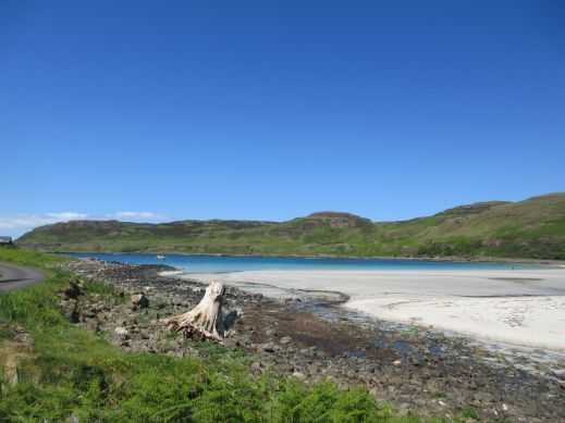 トバモリーの町を散策しながら買い物をしても、まだホテルのチェックインには時間があったので、2時間ほどドライブに出かけることにしました。ダーヴェイグ(Dervaig)経由でマル島の北をドライブします。湖を左手に見ながら、細い山道を通り抜けてダーヴェイグに到着。ダーヴェイグは小さな村です。そのすぐそばの海岸のそばに車を停めて、撮影したのが次の写真です。きれいな海岸ですね。さらに車を進めて、対岸を見ると、マル島の北にあるクイニッシュ(Quinish)の山々が見えておりました。リアス式海岸のようになっていますから、近くに見えますが、ぐるっと遠回りしないと対岸には着くことができません。この辺りはきれいは海岸の風景が続きます。カルガリー湾を経て、ぐるっと回ってセイレン(Salen)まで戻ってきました。ここで休憩。再びトバモリーに戻って、チェックイン。ホテルからの風景です。時計を見ると、まだ午後3時ごろでした。(続く)