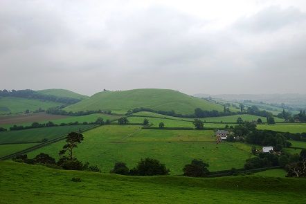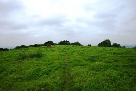 キャドベリー城の頂上付近はなだらかな傾斜の草原となっています。